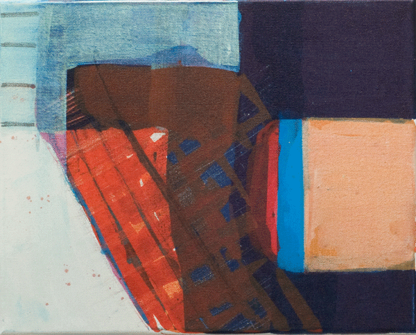 My paintings are all from a series i made last year in which i used imagery of boat yards to make little, abstract works. I took close up photographs of boats, nets, portholes, boatsheds, making small paintings using acrylic inks on canvas.